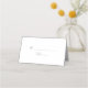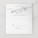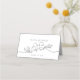 Elégante carte de mariage blanc classique et minimaliste, avec nom et numéro de table, inséparables uniques dessinés à la main et script de calligraphie manuscrit.