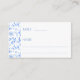 Laissez-vous tenter par l'élégance de votre mariage grâce à nos classiques porcelaine botanique bleue ou cartes à thème folklorique. Ces cartes présentent un design intemporel, avec les noms des mariés et des mariés à l'envers et un délicat motif de fleurs d'aquarelle bleue à l'arrière.