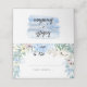 Une très jolie bordure fleurie orne l'avant de la carte d'endroit où sont placés le nom et le numéro du client. Le dos de la carte contient un lavage à l'aquarelle bleue et les noms du couple mariage. Facile à customiser. Parfait pour la do-it-yourself mariée.