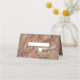 Ce design est orné d'un arrière - plan en bois rustique. L'arrière - plan en bois brun simple est complété par le texte blanc et l'élément central moderne propre qui encercle la mariée et les mariés noms date mariage au verso de la carte de place. Les tons marrons du grain de bois créent une atmosphère rustique de jardin boisé de campagne. Design élégant de carte de lieu de mariage avec des éléments modernes. Des invitations de mariage et d'autres articles de papeterie sont également disponibles. Facile à personnaliser avec vos détails. Ecrivez à la main vos noms d'invités et numéro de table dans l'espace prévu à cet effet.