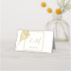 Elégante carte de table ou carte de place simple couleur or fleurie mariage design. Un design de feuille personnalisé pour mariage customisé stationnaire. Un espace est prévu pour le numéro de table et le nom de l'hôte. Sur le dos se trouvent les initiales de la Mariée et des Grooms. Mariage personnel stationnaire de Just Fine Designs.