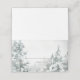 Cette belle carte de mariage de forêt blanche et verte présente une scène de forêt aquarelle sur un arrière - plan blanc éclatant. Il y a de l'espace pour écrire dans un nom et un numéro de table. L'arrière/l'intérieur est vert forêt.