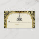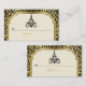 Lustre Art Déco noir, carte de séjour or ornée d'un lustre noir, bordure de style Art Déco et damas floral noir et doré sur beige/écru. Ce design élégant est une approche moderne d'un style vintage/rétro qui ressemble à celui des années 20 et du Grand Gatsby. Il fait partie d'un ensemble mariage et est entièrement personnalisable.