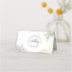 Elégante carte de lieu de mariage avec des détails de verdure Eucalyptus exquis et des taches délicates en cascade d'aquarelle. Zone pour le nom de l'invité et le numéro de table sur le devant. Si vous préférez utiliser ces cartes sur des tables avec un nom d'invité écrit à la main mais pas de tableau numérique, vous pouvez facilement supprimer des lignes et des images "table" en sélectionnant personnaliser plus loin. Retour avec élégants détails d'angle verdoyant et logo monogramme avec noms de couples, ou noms de couples ensemble sur le dessus (i.e. "JACKELINE + MATTHEW") et la date en bas (i.e. "08. 25. 20XX"). Taches vertes et aquarelles dans un beau mélange de tons vert, bleu, jaune et beige. Une partie de notre collection "Elegant Greenery Eucalyptus Mariage et Evénements" avec une variété de produits de coordination disponibles, y compris les cartes de sièges et les numéros de table.
