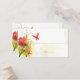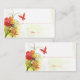 Cette élégante table mariage chic carte de visite de carte de place a une aquarelle rouge et verte design floral avec deux papillons volant à gauche. Au fond, il y a une silhouette gris et molle de quelques fleurs de nénuphars. Dans l'arrière - plan, il y a un look doux vert en détresse. Sur la droite, vous pouvez écrire à la maison le nom de l'invité et le numéro de table où ils sont assis.