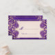 Ces cartes d'escorte de table de réception de mariage, dans des tons époustouflants d'or pâle resplendissant et de violet d'aubergine somptueux, sont un élégant mélange de sensibilités Art Nouveau et Victorienne, avec un cadre sophistiqué de belles tourbillons et de délicats défilement, et texte en script élégant et de serif classique et polices bloc. Le texte est entièrement personnalisable - personnalisez le dos avec vos propres infos mariage!