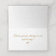 Le design présente un pur blanc arrière - plan à un élégant texte couleur châtaignier affiché dans le format traditionnel pour une carte catholique. En haut à gauche se trouve l'image de Notre-Dame de Fatima comme ovale et bordée de roses et de verdure délicats. Des images de roses et de verdure sont également affichées dans les coins supérieur droit et inférieur gauche. Les noms de la mariée et de la mariée sont présentés en bas à droite. Reverse représente l'image de deux roses délicats en bas à droite. Toutes les images sont en couleur sépia. Aussi disponible en couleur et en noir et blanc. Conçu pour se coordonner avec la "Suite Mariage catholique Sepia Vierge Marie".