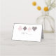 Parfait pour un mariage de casino glamour et glamour de Las Vegas, cette carte blanche pliée présente une parties scintillant en faux argent avec des costumes de carte rose pâle, un espace pré-imprimé pour écrire dans les numéros de table et un espace blanc vierge pour écrire dans vos noms d'invités. Votre traiteur a-t-il besoin de connaître le choix de repas de chaque client ? Modifiez ce design pour ajouter un dossier coloré unique à chaque type de repas ou utilisez un autocollant pour indiquer qui obtient quel type de repas. Ces cartes sont vendues en paquets de 25, n'oubliez pas de commander suffisamment pour chaque endroit !