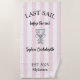 Lâchez-vous pour la célébration ultime avec cette serviette de plage amusante et élégante Last Sail Before the Veil ! Parfaite pour les enterrements de vie de jeune fille de destination, les sorties en yacht et les escapades côtières, cette serviette personnalisée présente des rayures rose pastel, une illustration de toast nautique mignonne et un espace pour le nom de la mariée, le lieu et l'année.