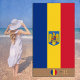 Plage serviette : drapeau roumain et roumain avec un nom "personnalisé" monogrammé en bas - amour mon pays, voyage, vacances sur la plage, patriotes / fans de sport