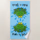 Cute Green Frog Splash Design Beach Towel avec couleur et texte arrière - plan personnalisable.