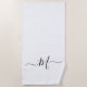 Moderne solide blanc noir Script Monogramme initial Plage serviette