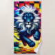 Cette serviette de plage est ornée d'un lion d'art.