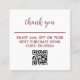 Carte de remerciements personnalisée avec QR Code - Parfait pour les petites entreprises! Montrez votre appréciation aux clients avec notre Carte de remerciements personnalisable avec un code QR pour plus de commodité. Idéale pour les petites entreprises, cette carte exprime sa gratitude avec un message sincère : "Merci pour votre achat". Offrir un rabais à vos fidèles clients est une excellente façon de dire, Merci!