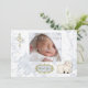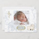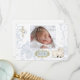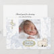Un bel carte photo à thème chrétien avec petit agneau, croix d'or avec coeurs sur papillon bleu et arrière - plan fleuri avec cadre doré orné de texte Merci. Convient aux baptêmes, baptêmes, communions et confirmations.