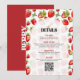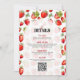Ce joli baby shower Party détails design dispose d'un cadre de fraise rouge adorable sur un blanc avec typographie noire personnalisable.