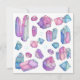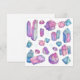 Cette carte plate et carré présente mon illustration originale de cristaux et de pierres précieuses, dans de beaux violets, des roses et des lacets. Cette illustration a été réalisée à l'aide de crayons colorés.