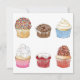 Une carte douce comportant mon illustration originale à l'aquarelle de six cupcakes délicieux.