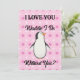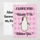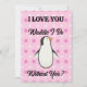Création Que ferai-je sans toi avec graphique de manchot et pois sur fond rose. Message intérieur personnalisable.