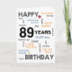 Carte d'anniversaire à l'intérieur : Que votre journée spéciale soit remplie de joie, de rire et de moments inoubliables que vous pouvez chérir pour les années à venir. Je vous souhaite tout le bonheur dans le monde pour votre anniversaire et toujours! Description : Célébrez le 89e anniversaire remarquable avec notre charmante carte Happy 89e anniversaire! Que ce soit pour votre mère bien-aimée, votre père chéri, votre frère cher ou votre soeur aimée, cette carte offre une belle façon de transmettre vos souhaits sincères et de remplir leur journée spéciale avec amour et bonheur. Le recto de la carte comporte "Joyeux Anniversaire" aux côtés du numéro 89, symbolisant des décennies, des années, des mois, des semaines, des jours, des heures, des minutes et des secondes, soulignant l'importance de cette étape extraordinaire.