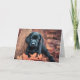 Cette carte d'anniversaire à thème d'automne présente un adorable chiot noir du Labrador reposant dans une pile de feuilles.