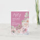 Invitation d'anniversaire personnalisable avec roses Aquarelle dans les tons rose pâle et vert avec texte blanc. Conception correspondante au dos avec numéro d'âge personnalisable. À l'intérieur pour votre écriture personnelle. Une invitation classique à l'allure féminine. Personnaliser pour votre événement spécial avec votre choix d'âge, de texte et de couleur arrière - plan.