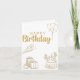 Carte d'anniversaire entièrement personnalisable avec un thème doré qui comprend un gâteau et des ballons.