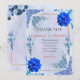 Exprimez votre gratitude avec élégance grâce à cette belle carte de remerciement de mariage florale bleue. Avec ses fleurs à l'aquarelle bleu marine et bleu poussiéreux, ce design romantique complète parfaitement les thèmes de mariage classiques et formels.