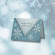 Winter Wonderland Blue Snowy Romantique Carte d'hôte mariage Entrez dans un merveilleux pays d'hiver blanc magique avec ce design romantique et douillet avec des fleurs dépoli, étincelant glacé et d'élégants flocons de neige. La palette mêle le bleu neigeux, blanc, éclat et subtil charme de Noël pour créer un style saisonnier intemporel, parfait pour les fêtes mariages ou festives de décembre. Une touche d'élégance fraîche allie l'amour chaleureux avec des textures florales, des teintes douces et une humeur romantique moderne. Cette conception fait partie d'une collection de mariages personnalisables et a été pensée avec l'aide de l'IA pour soutenir la créativité. Je peux gagner une petite commission grâce à des achats effectués via des liens de référence sur les médias sociaux.
