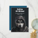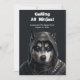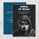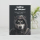 Carte d'invitation pour chien Husky Ninja sur fond noir et blanc.