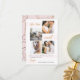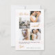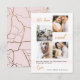 Faire-part rose et blanc à la mode avec script moderne, quatre photos collage, et fausse carte d'or changement de carte d'adresse.