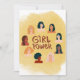 Belle carte de voeux internationale multi-culturelle pour les femmes. Le design présente des visages de femmes avec un arrière - plan d'aquarelle ocre et l'encouragement texte fille puissance dans un marron assorti. Le dos présente le même arrière - plan couleur ocre, avec un petit coeur de couleur marron. Envoyez cette carte unique en son genre le 8 mars et donnez du pouvoir aux femmes.