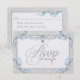 Une élégante carte RSVP avec un effet argent-parties scintillant chatoyant, conçue pour compléter la suite. Le cadre arrière - plan en papier de riz, les molles côtelettes d'aqua et de lilas, les étoiles de mer bijouées, les coquilles de perles et les accents en pierres de cristal avec un accent de swag de diamant créent un look côtier parfaitement coordonné. Nous garderons toujours le bonheur de cette journée avec nous.