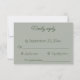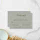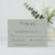 Simple, moderne et d'inspiration nature : cette carte RSVP Minimal Sage Green est parfaite pour votre suite mariage. Doté d'une disposition propre avec un texte délicat et d'élégants tons verts muets, cette carte de réponse est idéale pour les couples qui souhaitent organiser un mariage minimaliste, rustique ou de jardin. Personnalisez avec vos détails et coordonnez votre papeterie sans effort. Idéal pour les cérémonies du printemps, de l'été ou de plein air.