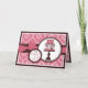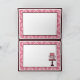 Gâteau élégant avec ruban à look 3D et étiquettes sur une impression damassée rose.