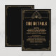 La carte de Mariage noir et or Détails Art Déco des années 1920 dégage un glamour vintage avec son arrière - plan noir audacieux et son design géométrique doré complexe. Parfait pour mettre en valeur les informations essentielles de votre grand jour, cette carte d'inspiration Great Gatsby est à la fois élégante et fonctionnelle, assurant à vos invités tout ce dont ils ont besoin dans le style. Pour toute personnalisation ou assistance, n'hésitez pas à nous contacter, nous sommes là pour rendre votre mariage inoubliable !