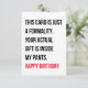 Il n'y a plus d'idées cadeaux d'anniversaire ? Cette drôle de carte d'anniversaire avec message ou citation hilarante vous intéressera sûrement. Cette carte peut être un cadeau d'anniversaire parfait si vous êtes prêt à transmettre des voeux d'anniversaire coquins et drôles à votre être aimé. Peut être un cadeau parfait pour lui, pour elle, pour les hommes, pour les femmes, pour le mari, pour la femme, pour la petite amie, pour le petit ami, pour la fiance, le fiancé.