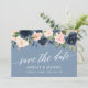 Calligraphie Élégante, Aquarelle Dusty Blue Rose Blush Wedding Enregistrer La Date Faire-part Fiançailles