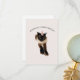 Carte d'Anniversaire rose pâle avec chatte réaliste siamois mignon en casquette de fête.