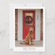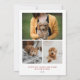 Cette carte de Noël est parfaite pour présenter vos amis à quatre pattes préférés. L'avant a une grande ouverture pour votre photo principale et l'arrière a des taches pour 3 photos supplémentaires. Sur le devant se trouvent les mots "Joyeux Noël" dans une police serif en gras avec des options à personnaliser avec votre nom(s). Le dos a un texte en rouge qui dit "CHIENS PUPPY ET CHAUDS SOUHAITS D'HIVER" avec un endroit pour ajouter l'année.