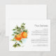 Ajoutez une touche d'élégance vibrante à votre journée spéciale avec notre carte de détails de mariage Oranges Citrus Garden. Doté d'un design boho moderne avec des oranges d'aquarelle luxuriante, cette carte complète magnifiquement tout faire-part de mariage d'agrumes, parfait pour une fête chic du printemps ou de l'été !