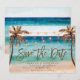 Une belle scène de plage tropicale aquarelle avec des palmiers design enregistrer la carte de date, avec la plage inversée correspondante. Facile à modifier ou à supprimer les champs de texte disponibles pour personnaliser les informations avec vos propres détails. Beaucoup d'objets correspondants dans cette collection plage/boho. Visitez mon magasin pour voir la gamme complète. Invitations, autocollants et étiquettes de adresse sont également disponibles ainsi que d'autres variantes de conception.
