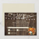 Cette invitation présente un design d'automne rustique avec une variété de citrouilles de récolte et des lampes à cordes contre un arrière - plan de bois. L'invitation est faite de carton de haute qualité et est livré avec une enveloppe correspondante. Il fera une impression durable sur vos invités. Pour RSVP, vos invités n'ont qu'à cocher la case appropriée et envoyer la carte par la poste ou vous la retourner avant la date RSVP.