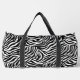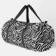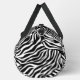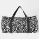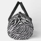 Ce grand sac en duffel est montré en imprimé zèbre mignon avec des accents de couleur noire. Impression sous licence