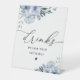 panneau de boissons aux mariages bleu poussiéreux à l'aquarelle. Le texte et les couleurs peuvent être modifiés.