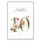 Cette carte de numéro de table comporte un numéro vert décoré avec des illustrations d'aquarelle de fleurs et de feuilles en rose roux, pêche, rouge, orange brûlé et vert. Ce numéro de table est parfait pour les mariages, diplômes, baby showers, douches nuptiales, anniversaires et autres événements. Tableau 10. Veuillez vérifier tous les numéros disponibles.