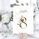Cette carte de numéro de table comporte un numéro d'or vert et rose orné d'illustrations aquarelles de fleurs et de feuilles en rose, rouge et vert. Ce numéro de table est parfait pour les mariages, diplômes, baby showers, douches nuptiales, anniversaires et autres événements. Tableau 8. Veuillez vérifier tous les numéros disponibles.