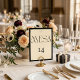 Élevez votre événement avec cette élégante carte de numéro de table espagnole. Dotée d'une palette de couleurs classique noire et crème, ce design dégage de la sophistication. Le texte gras 'MESA' combiné au numéro proéminent permet aux invités de trouver facilement leur table. Le monogramme subtil en haut ajoute une touche d'exclusivité. Parfait pour les mariages, les banquets ou toute réunion formelle où l'attention aux détails compte. Cette carte de table se fondra parfaitement dans une variété de thèmes de décoration, ajoutant une touche raffinée à vos réglages de table.