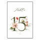 Cette carte de numéro de table comporte un numéro vert décoré avec des illustrations d'aquarelle de fleurs et de feuilles en pêche, rose rousse, rouge, terre cuite et vert. Ce numéro de table est parfait pour les mariages, diplômes, baby showers, douches nuptiales, anniversaires et autres événements. Tableau 15. Veuillez vérifier tous les numéros disponibles.