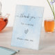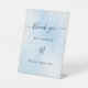 Un arrière - plan bleu clair/bleu bébé décoré de faux éclats d'argent. Texte : merci d'être venu. Prenez-en un, s'il vous plaît.